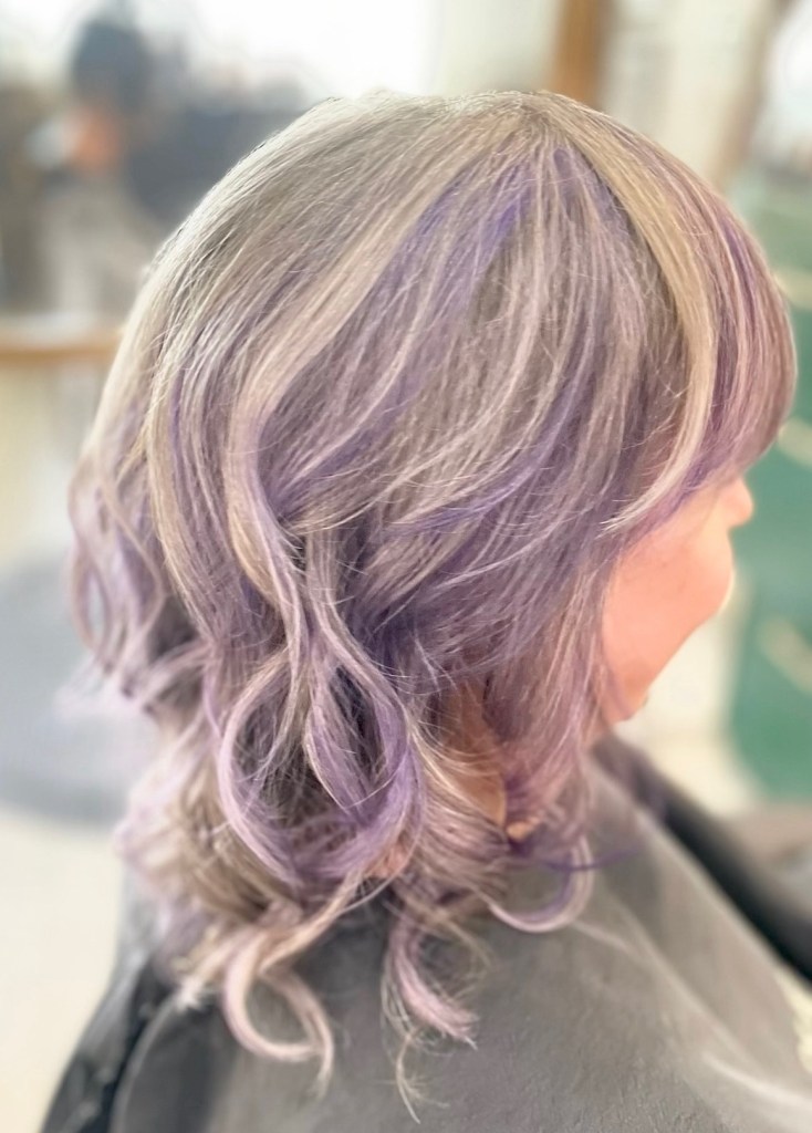 Embracing her wild side with this stunning silver hair blended with a pop of lavender. πβ¨ Stephania worked her magic and sheβs living for this adventurous new look! Who’s ready to join her in stepping outside our comfort zones? #SilverHairDontCare #LavenderHighlight”