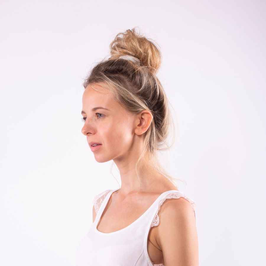 - Gather hair into a voluminous bun or pony.